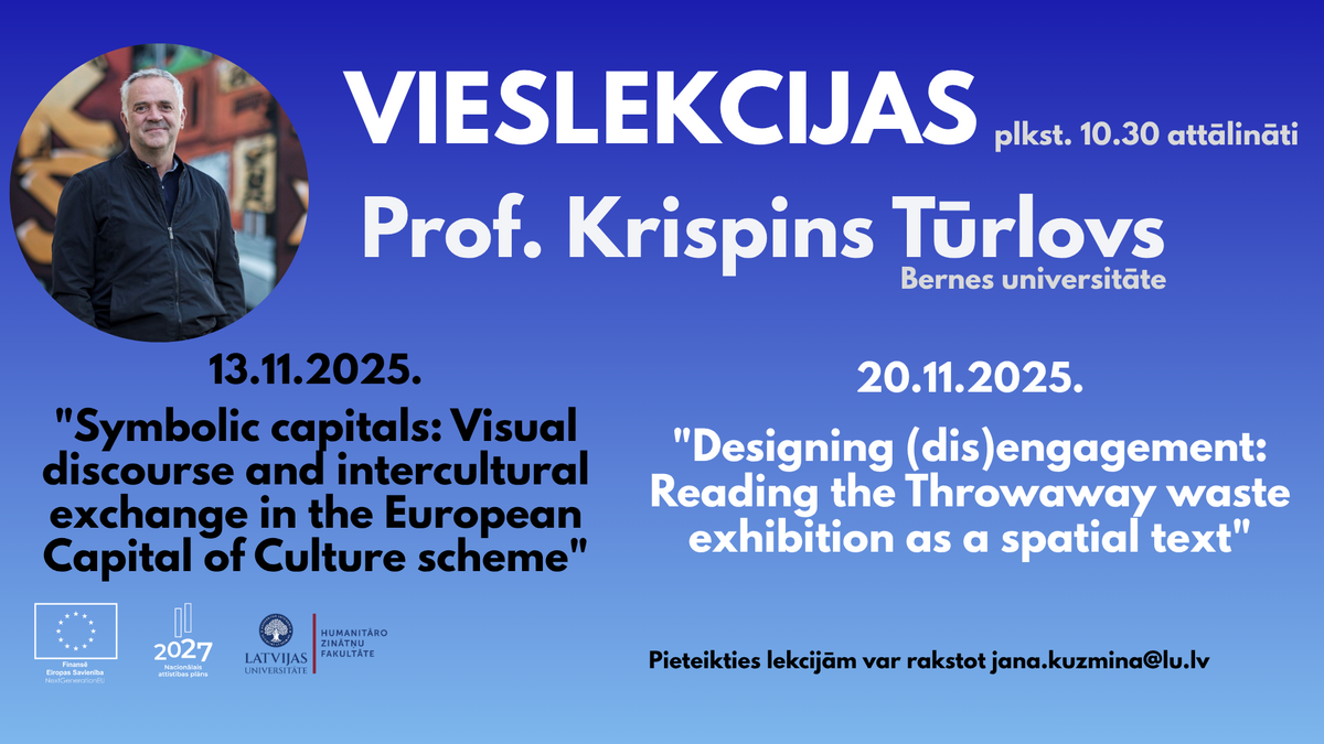 2025. gada 13. novembrī norisināsies vieslekcija "Symbolic capitals: Visual discourse and intercultural exchange in the European Capital of Culture scheme" un 20. novembrī - vieslekcija "Designing (dis)engagement: Reading the Throwaway waste exhibition as a spatial text". Abas lekcijas notiks angļu valodā.